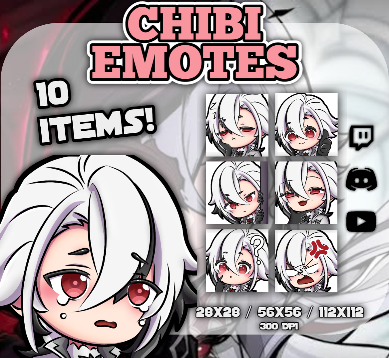 Arlecchino Emotes/ Hololive Emotes/ Vtuber Emotes/ Hololive EN/ Pack of 10 Emotes for Twitch, Discord, Kick