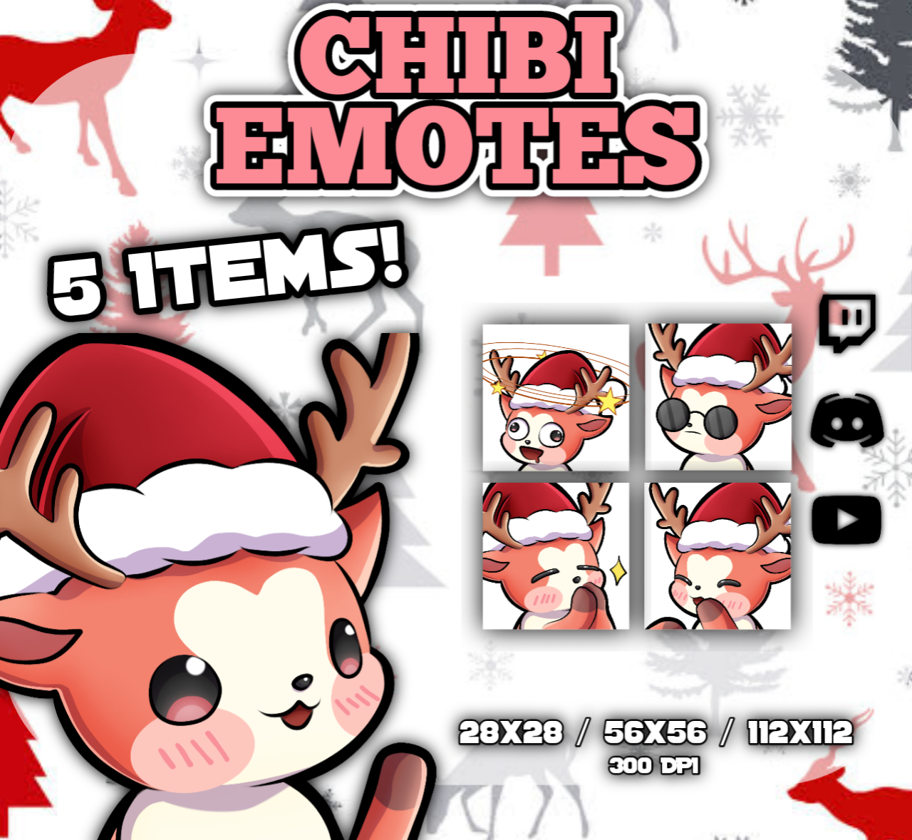 Deer Emotes/Pack of 4 Emotes for Twitch, Discord, Kick