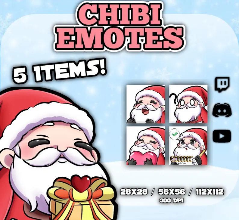 Santa Emotes/ Pack of 5 Santa Emotes for Twitch, Discord, Kick
